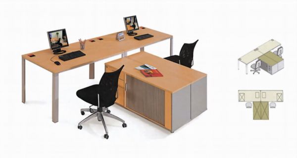 Office Desk, Bureau Main table: 2000*800*760mm Side table: 1200*500*600mm Cabinet: 420*500*630mm Material: MFC Color: Mahogany